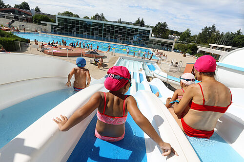 - un bassin ludique et d'apprentissage de 300 m² avec banquettes massantes, rivière à contre-courant et jeu d'eau,