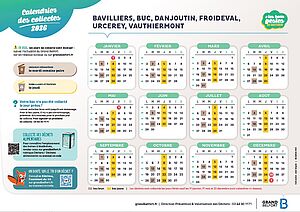 Les nouveaux calendriers de collecte 2026 sont disponibles sur le site internet du Grand Belfort. Pour obtenir le calendrier de votre commune, cliquez sur ce lien.